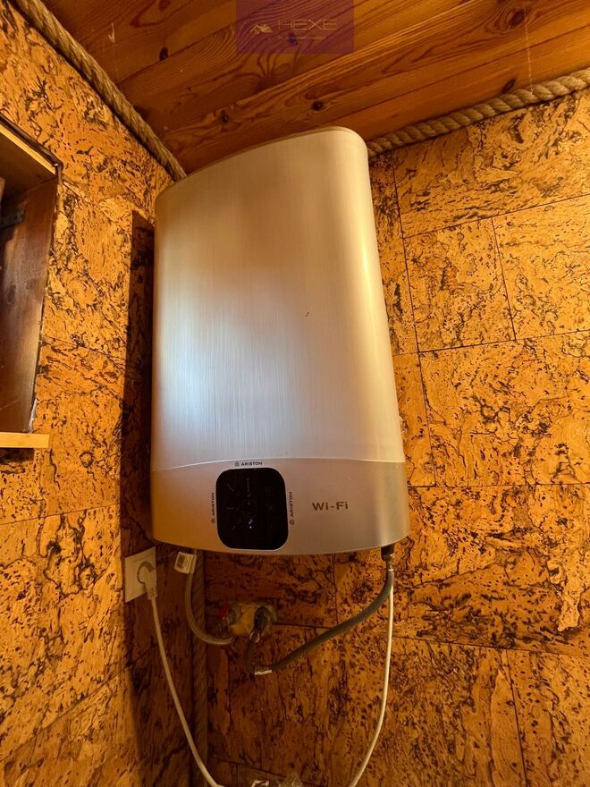 Dom główny:Nowoczesny, energooszczędny dom szkieletowy o powierzchni 35 m, wykonany z naturalnych materiałów (deska 1 cal, 20 cm wełny, elewacja z deski pół bala).Pokrycie dachu gont amerykański Owens, gwarantujący trwałość i estetyczny wygląd.
